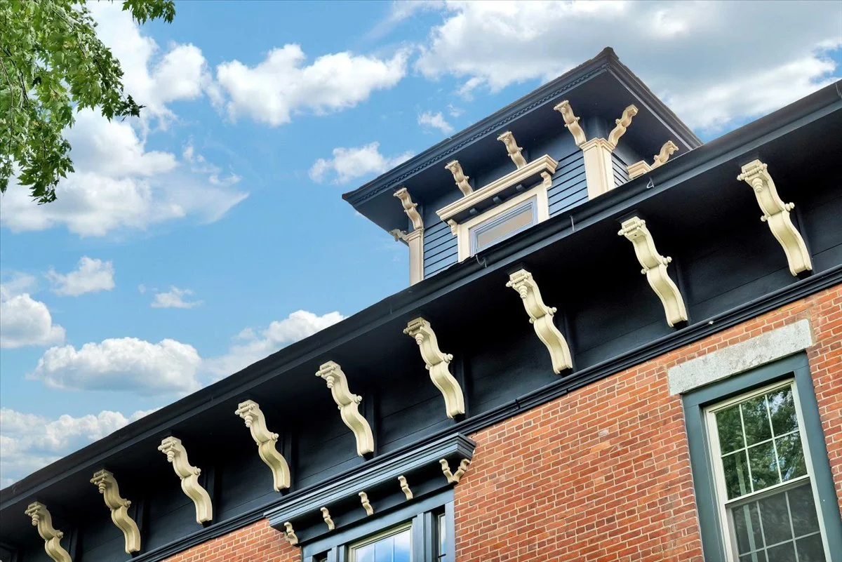 From its distinctive bracketed corbels to the soaring tower and original woodwork, this home is a showcase of 19th-century craftsmanship. A grand spiral staircase anchors the interior, while large windows flood the nearly 2,900 square feet of living space with natural light. Two fireplaces, original moldings, and gracious entertaining rooms set the stage for both intimate family living and formal gatherings.
