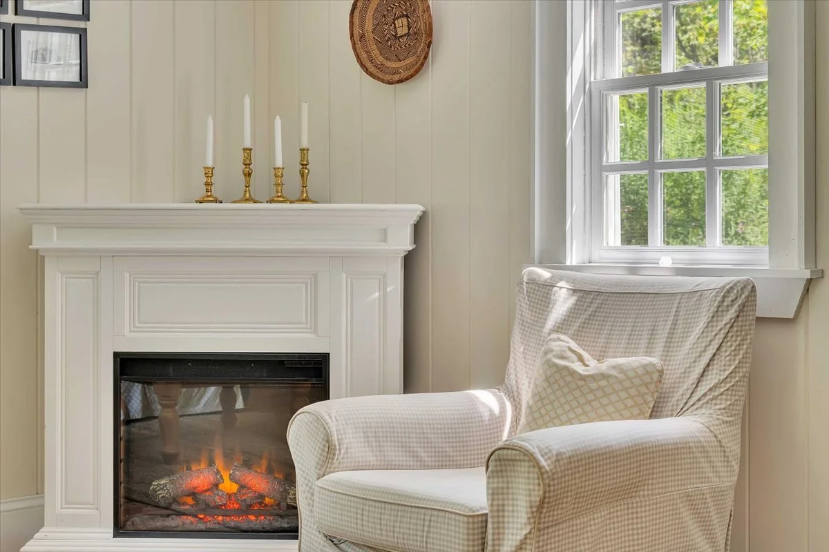Every detail of this home tells a story. The original wood floors, preserved with subtle marks of years past, whisper history beneath your feet. The primary bedroom's vaulted ceiling lifts the eye skyward, while the second bedroom offers a storybook room and an extra sitting area or office—perfect for reading, writing, or working remotely rounds out the second floor.
